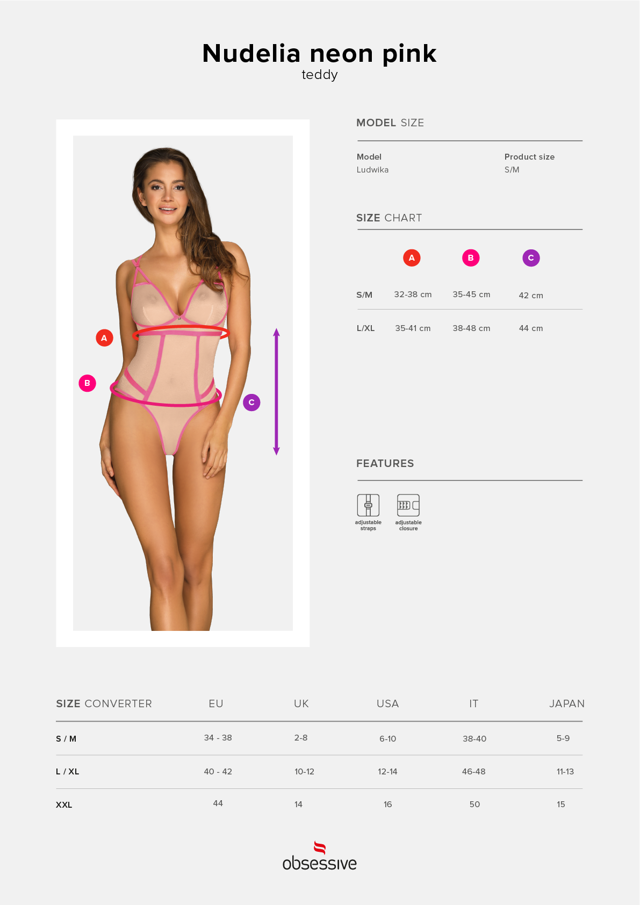 Elegantní body Nudelia teddy neon pink - Obsessive i